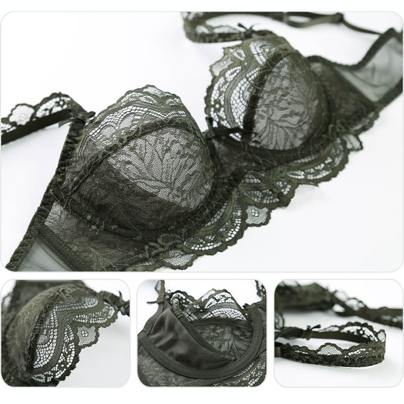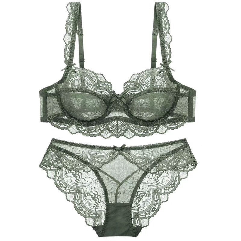Embroidery Ultrathin Underwire Solid Lingerie Set