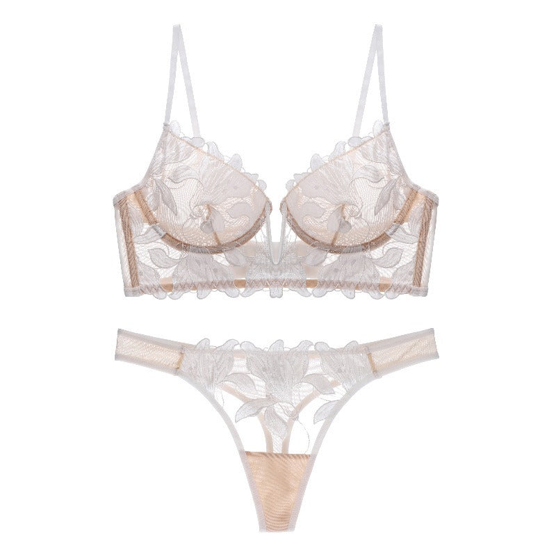 French Lace Embroidery Deep V-Neck Bralette