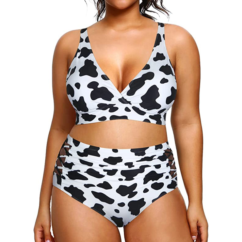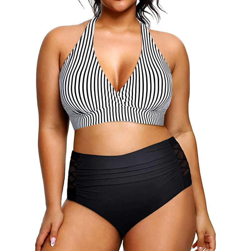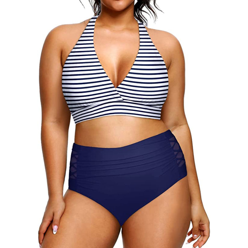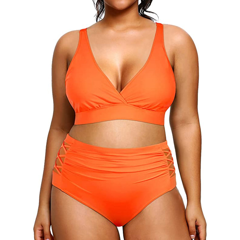 Super Stylish Elastic Closure V-Neck High Waisted Women Bikini