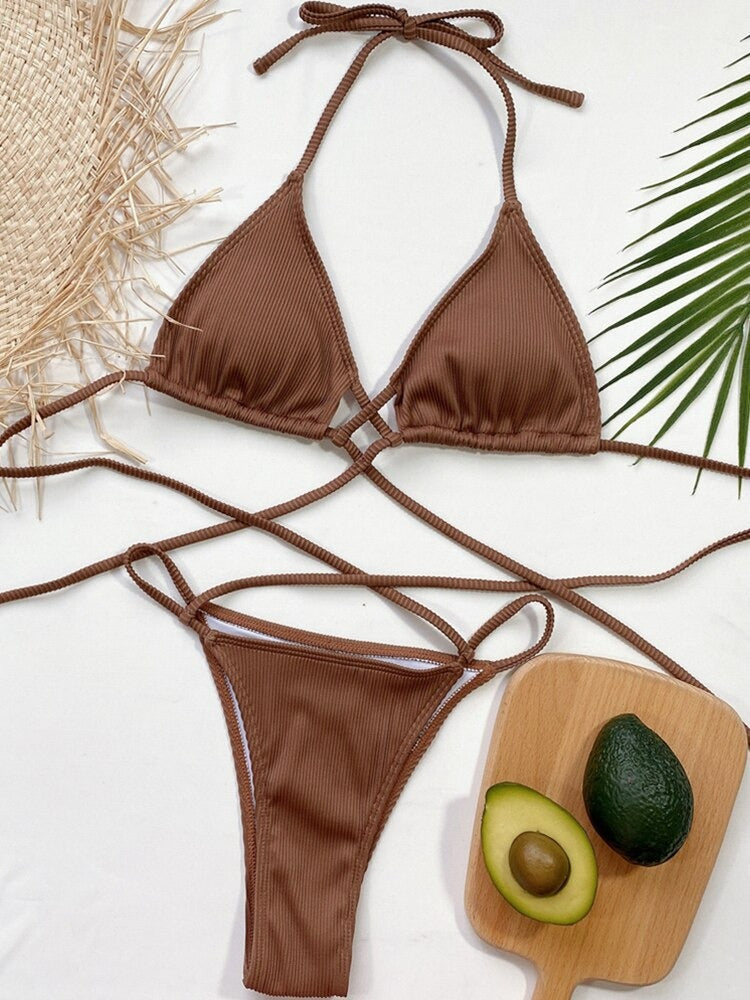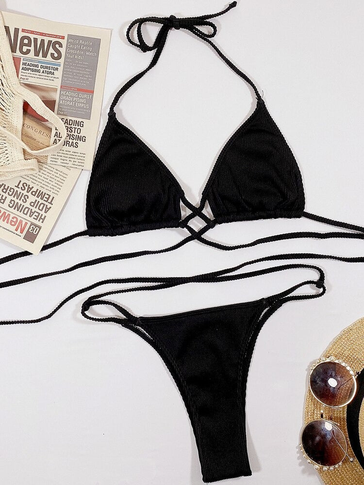 The Crossy Halter Ribbed Two Piece Bikini