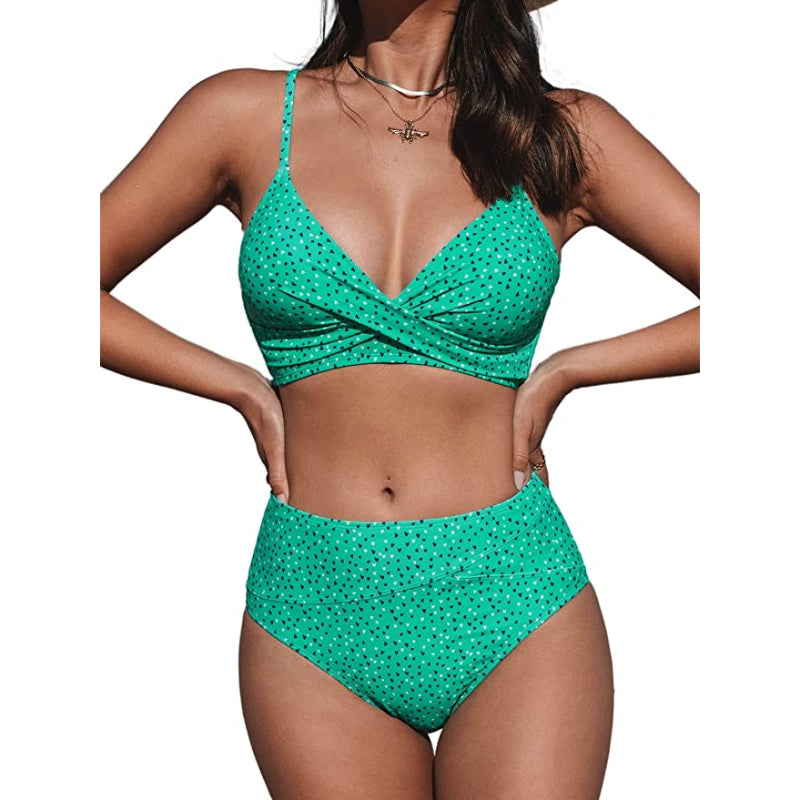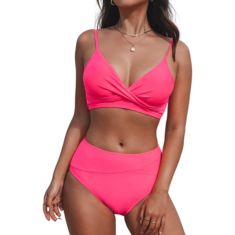 Two Piece Twist High Waisted V Neck Bikini Set