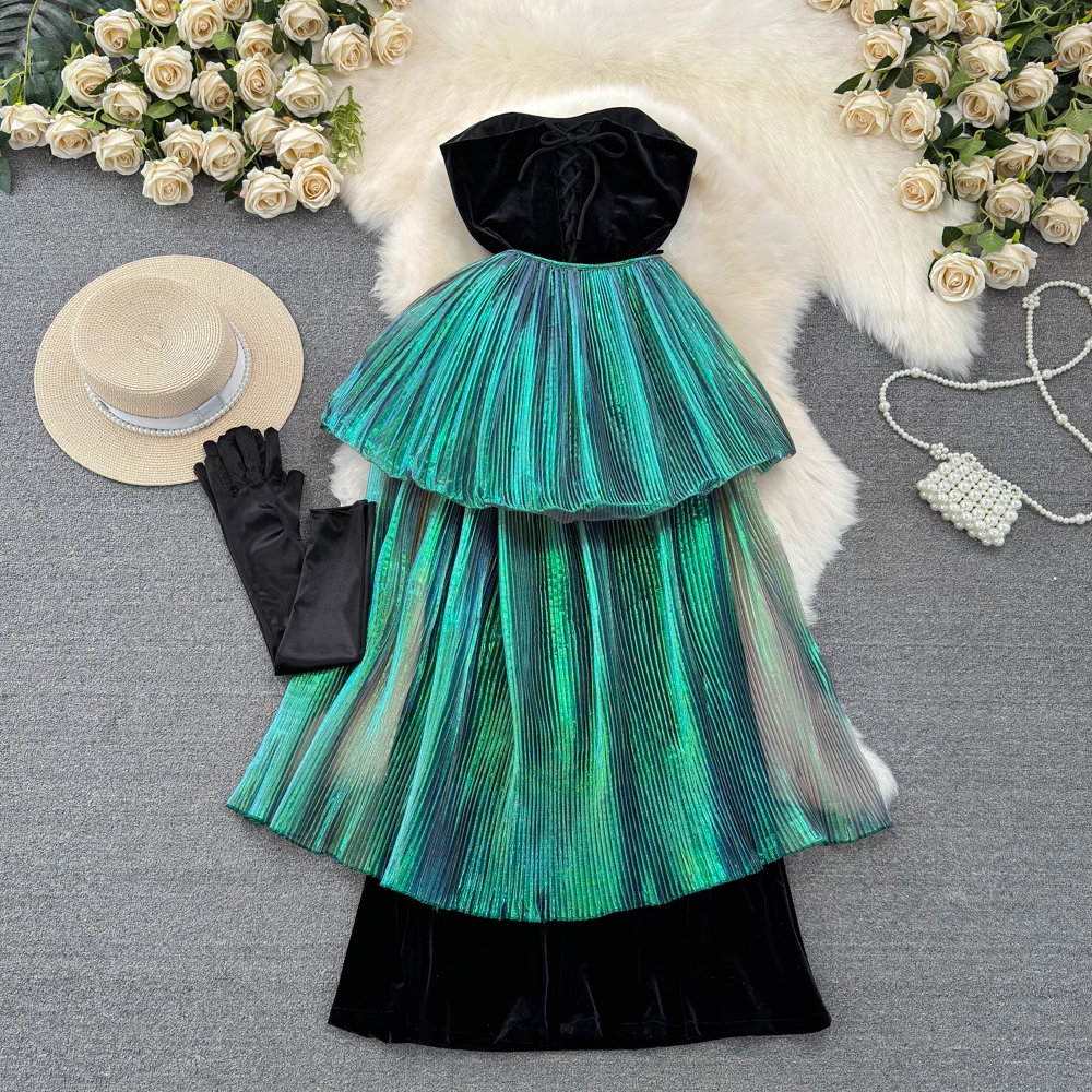 Women's Retro black velvet tube top bow bodycon dress Bodycon Dresses
