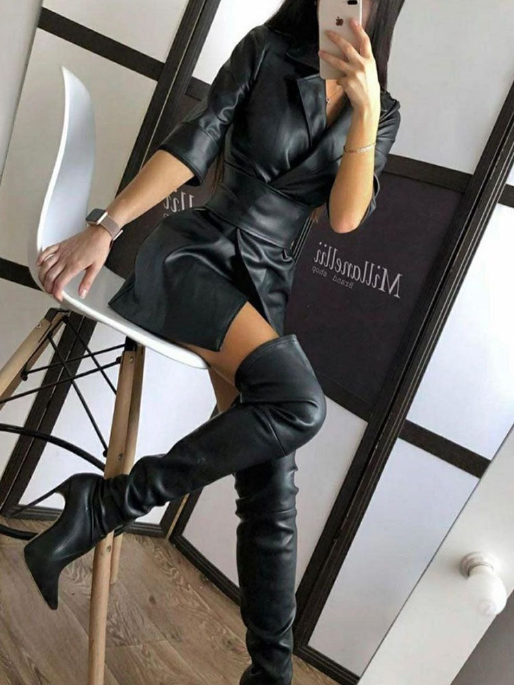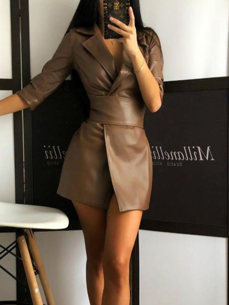 Women's Solid Color Belt Bodycon Dress Bodycon Dresses