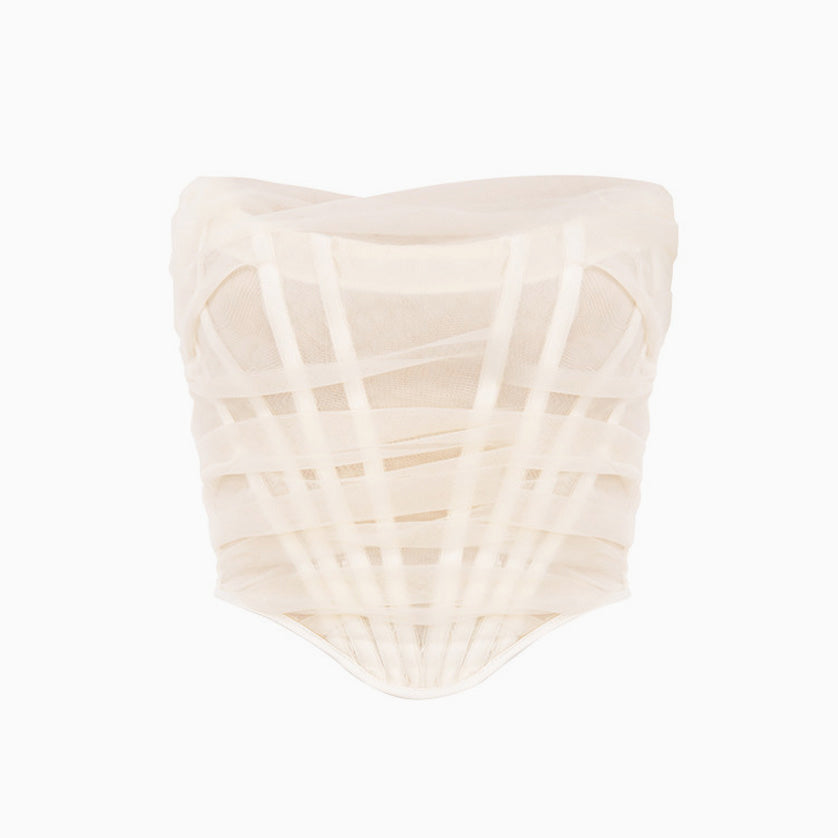 Sheer Style Ruched Strapless Mesh Corset Top - Ivory