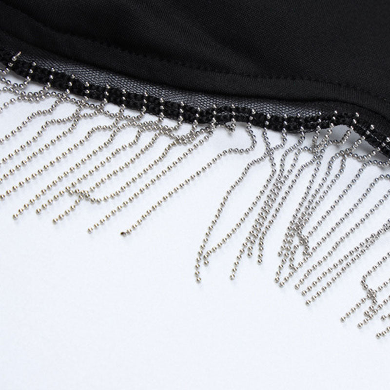 Fabulous Fringed Long Sleeve Crop Top Bodycon Mini Skirt Matching Set - Black
