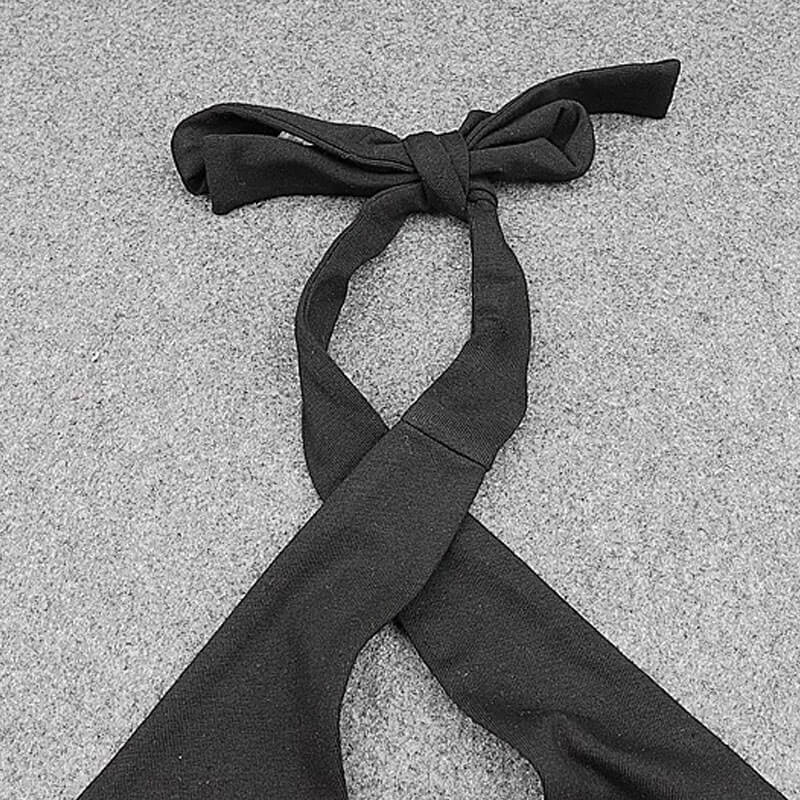 Flirtatious Open Back Trim Crisscross Halter Crop Wrap Top - Black