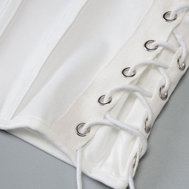Hook And Eye Detail Curved Hem Lace Up Backless Halter Crop Top - Black