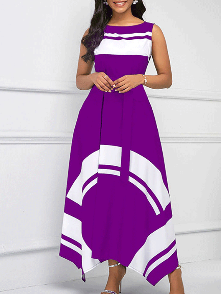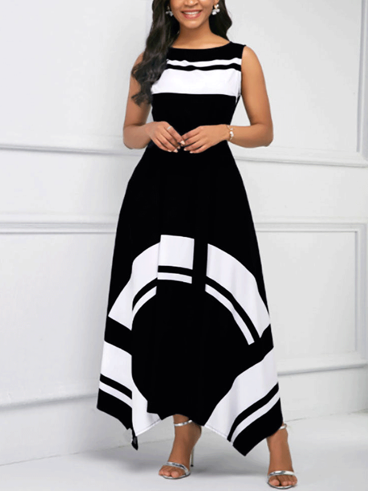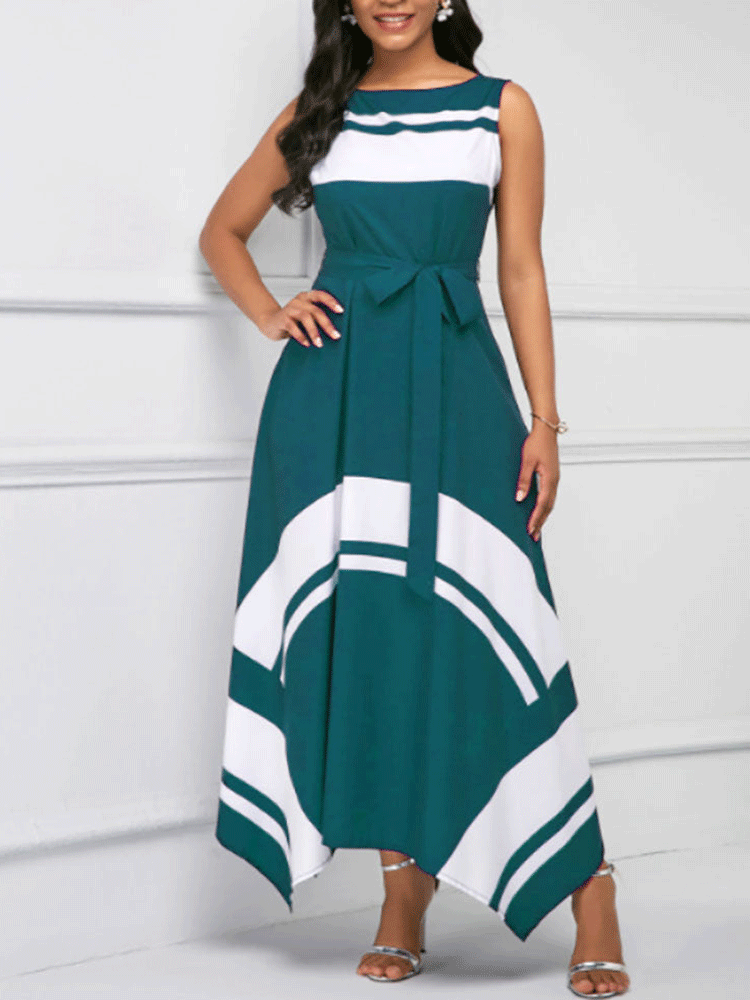 Women's Asymmetric Hem Sleeveless Maxi Dress Dress