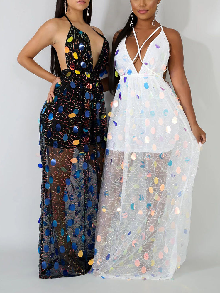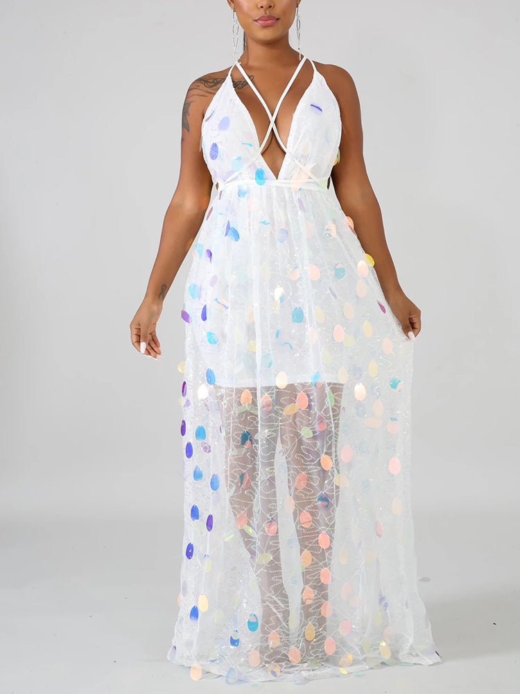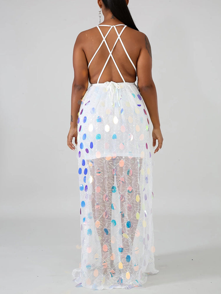 Women's Backless Strappy Sequin Dress Dress