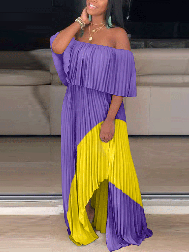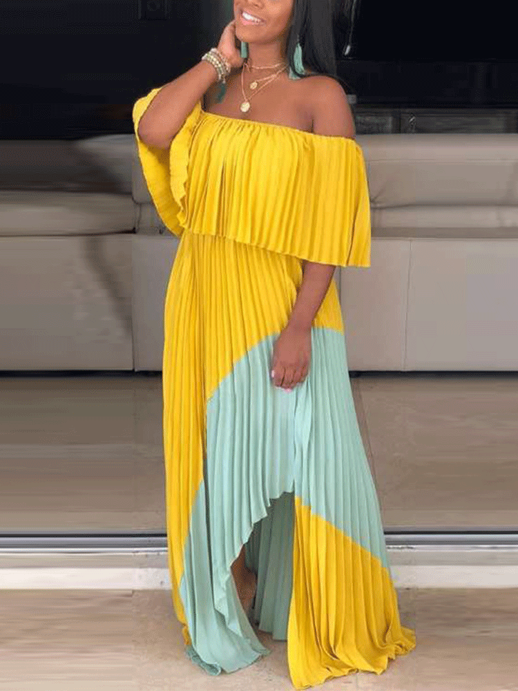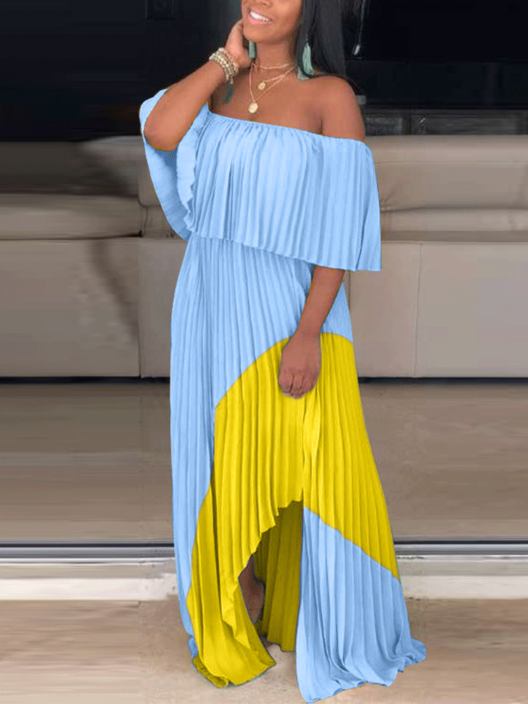 Women's Chiffon Off Shoulder Ruffle Maxi Dress Dress