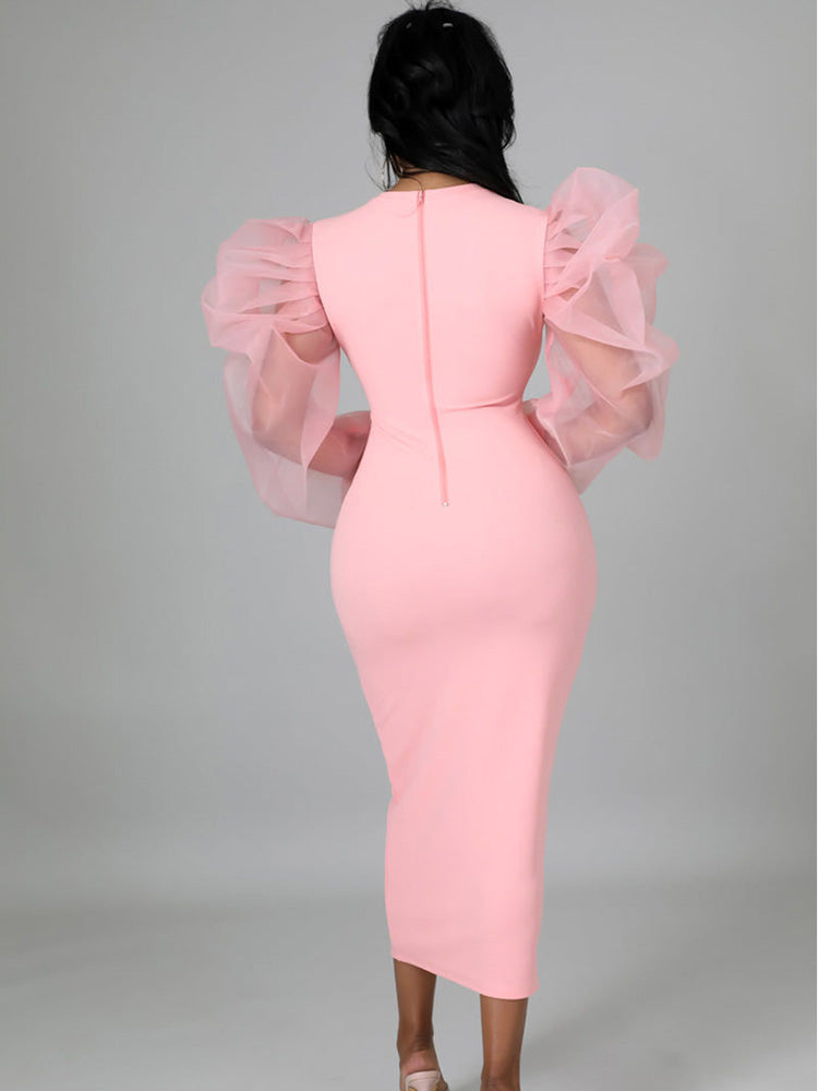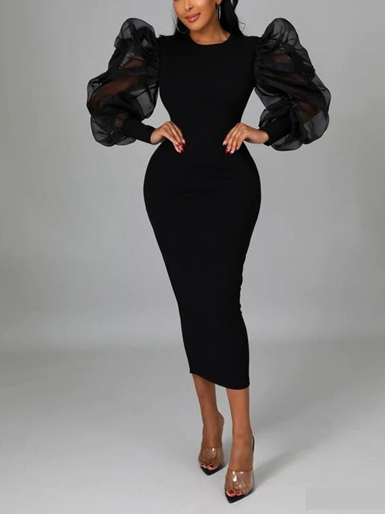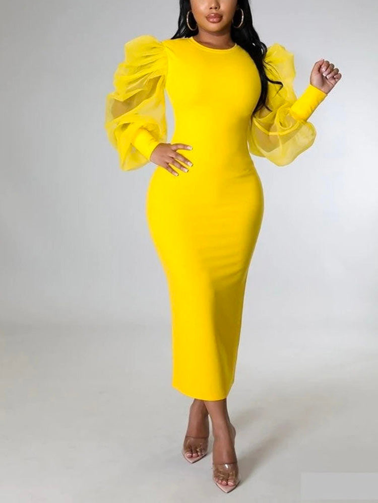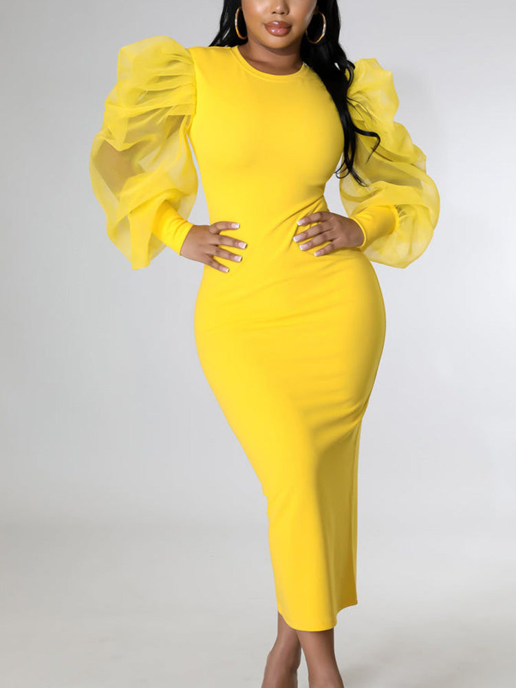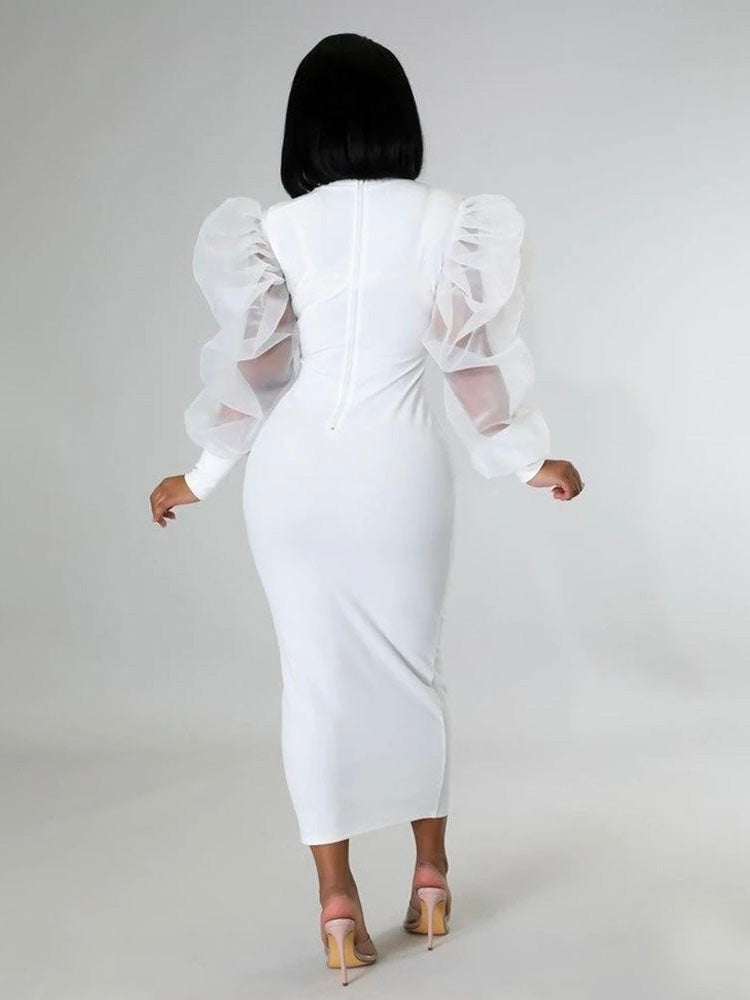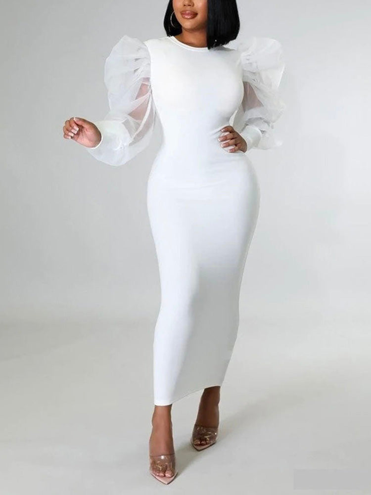 Women's Elegant Puff Sleeve Maxi Dresses Dress