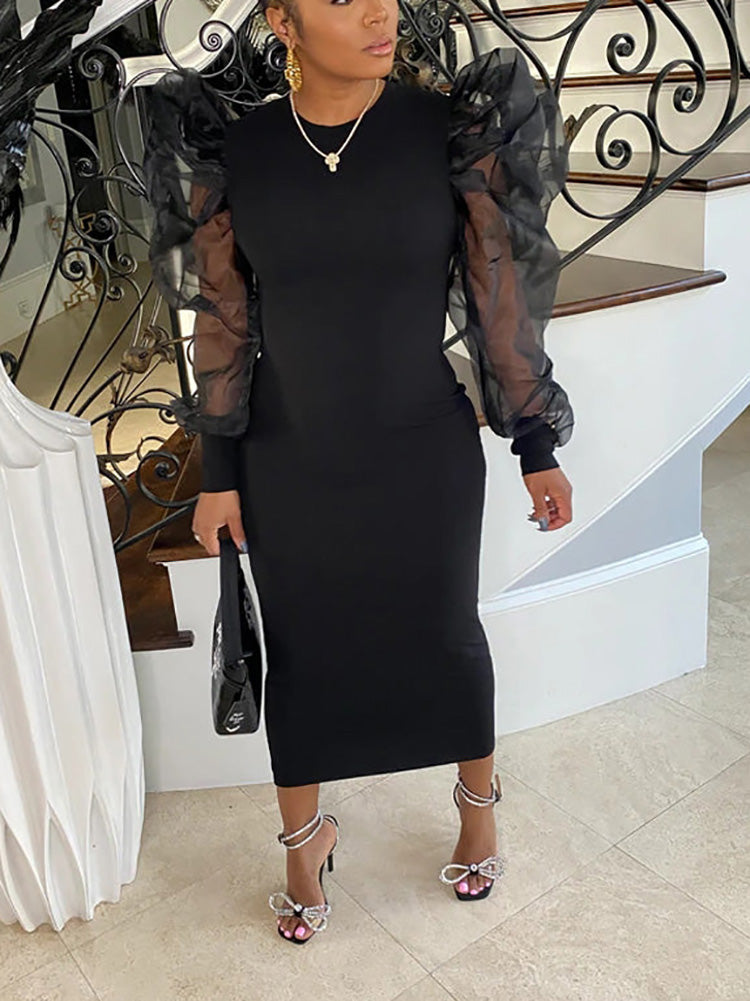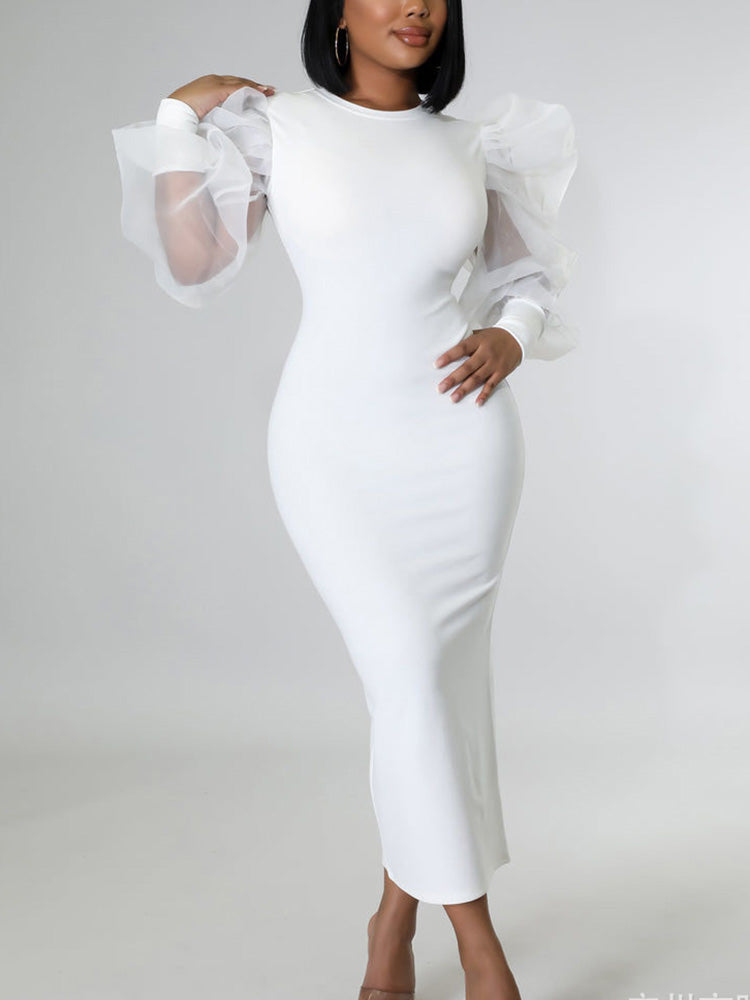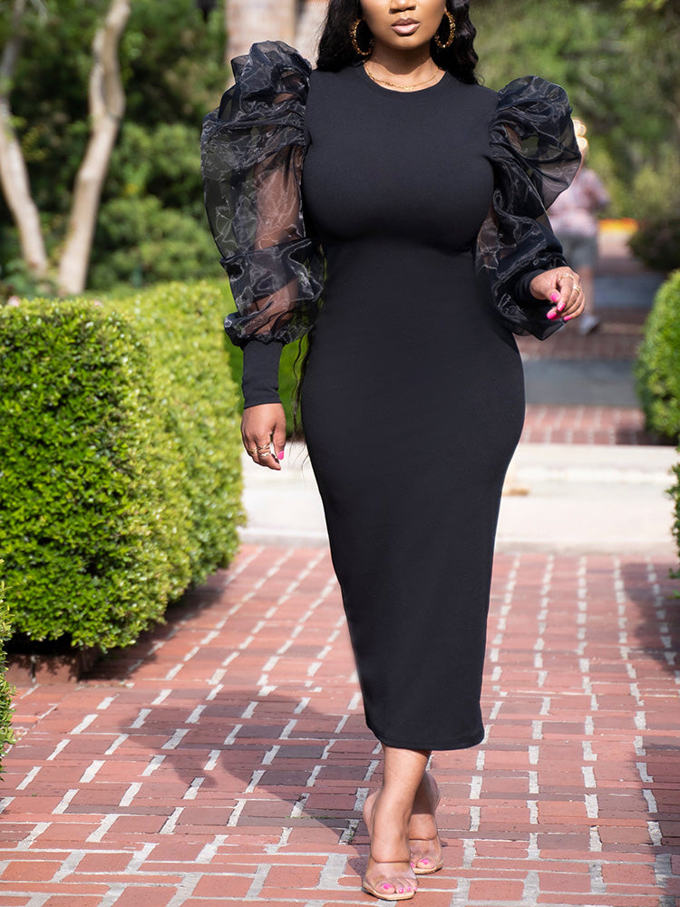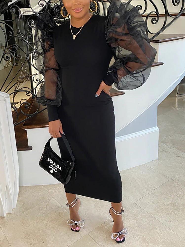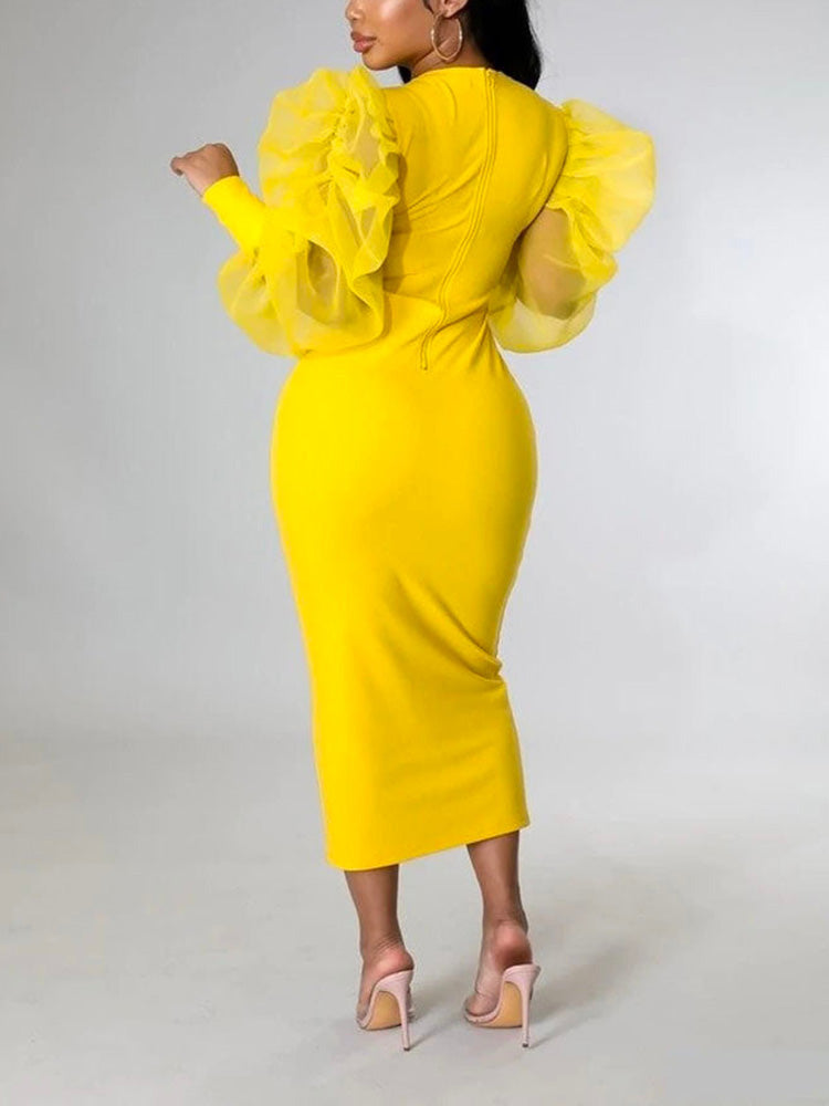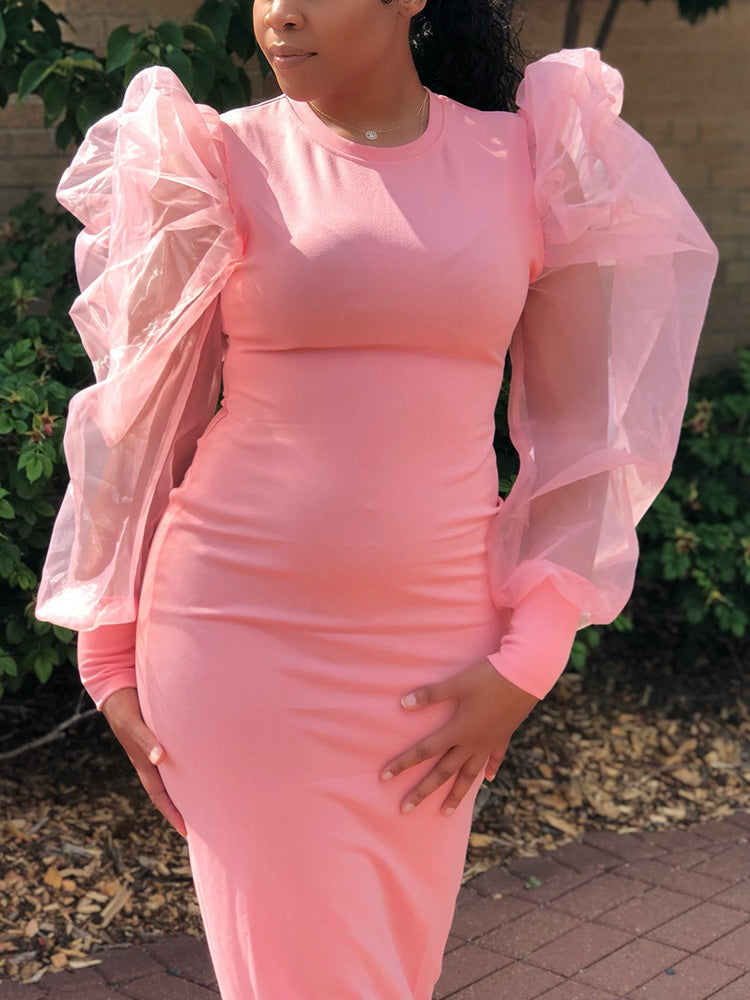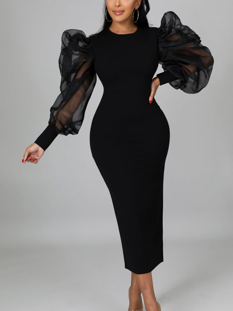 Women's Elegant Puff Sleeve Maxi Dresses Dress
