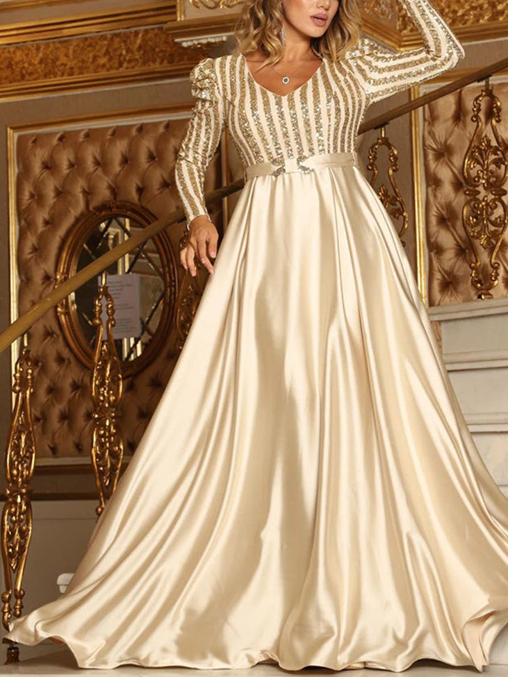 Women's Elegant Sequined Satin Dress Dress