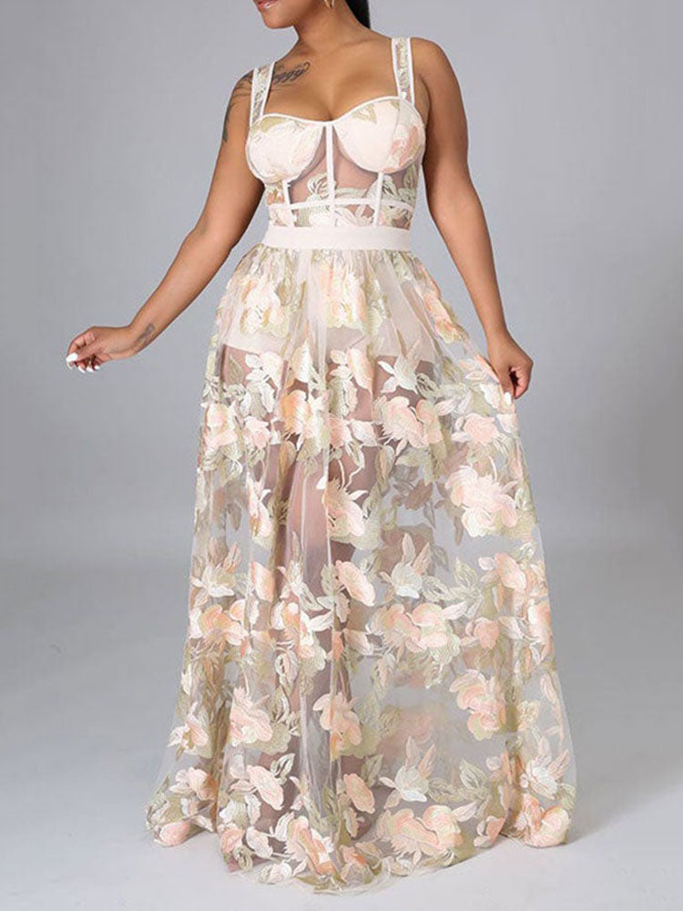 Women's Embroidered Mesh Party Wedding Dress Dress