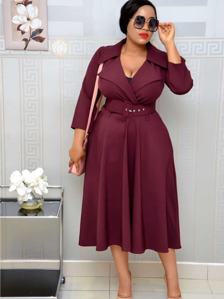 Women's Fashoin Solid Lapel Maxi Dress Dress