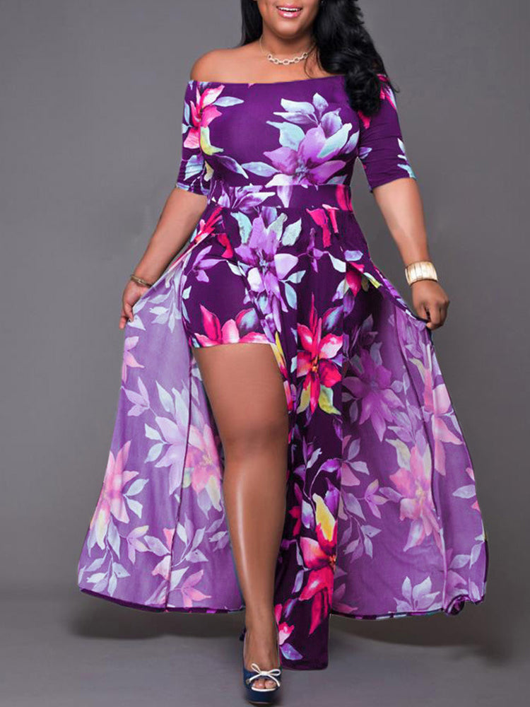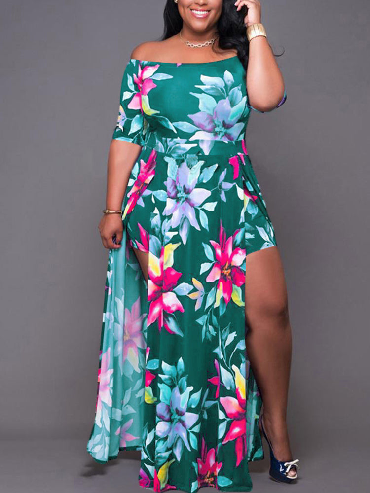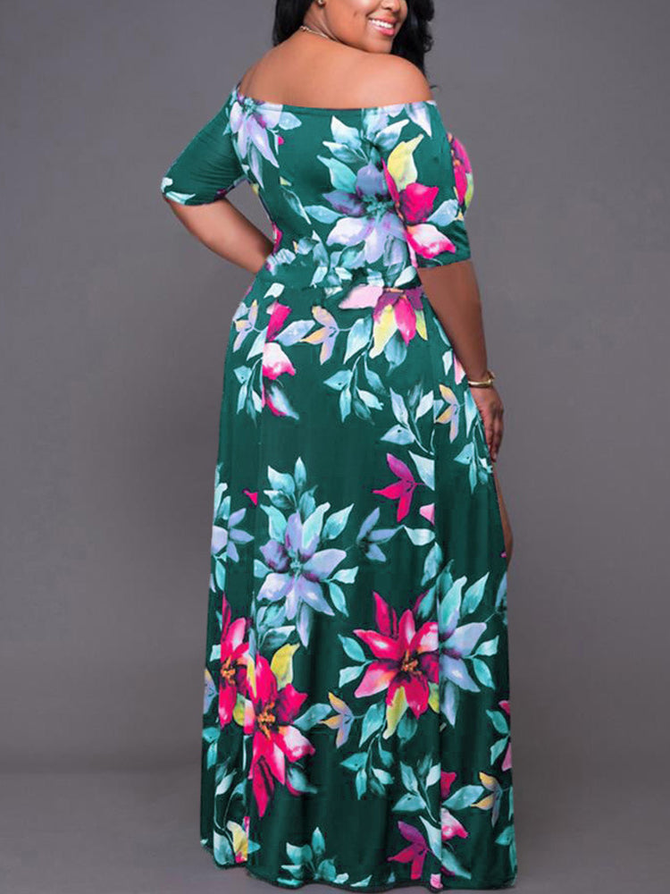 Women's Floral Print Cold Shoulder Slit Dress Dress