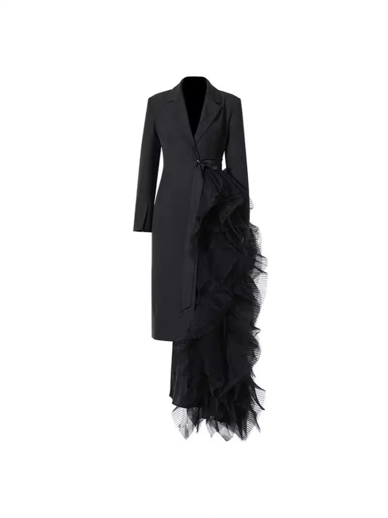 Women's Autumn niche asymmetrical suit dress spliced mesh high Party Dresses