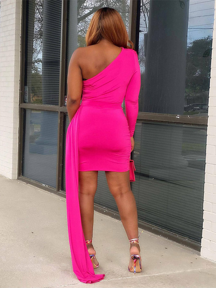 This oblique shoulder irregular solid party dress is designed for women who want to stand out at parties, dinners, and special occasions. Featuring a flattering silhouette and elegant details, it delivers both comfort and confidence.