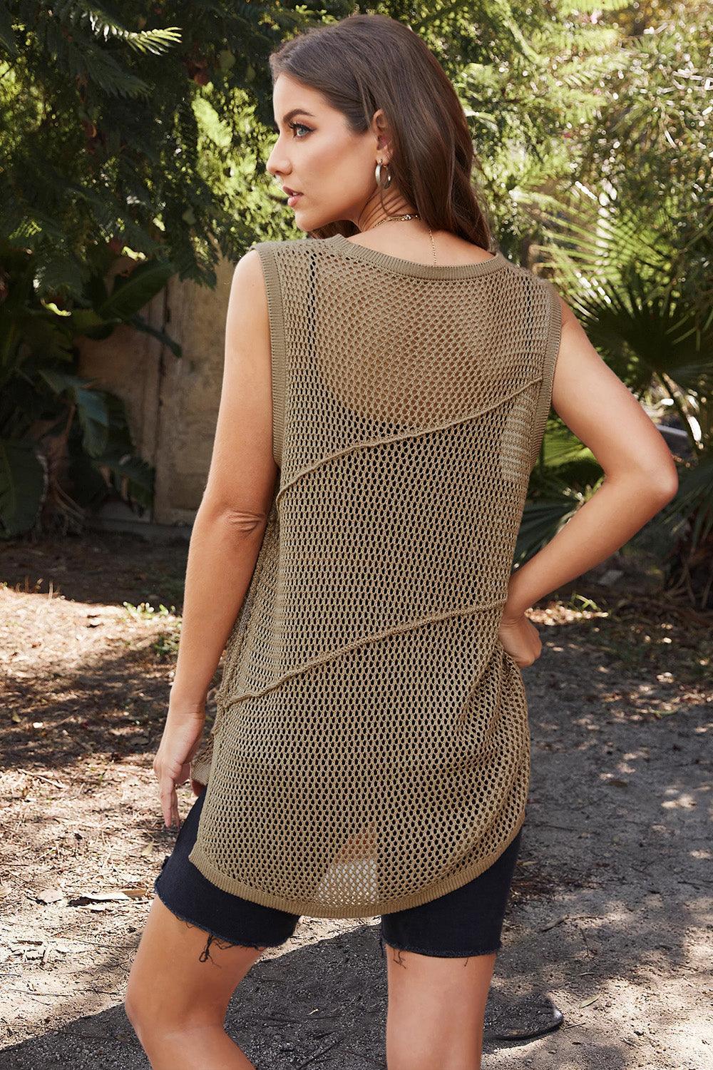 Double Take Openwork Sleeveless Slit Knit Cover Up