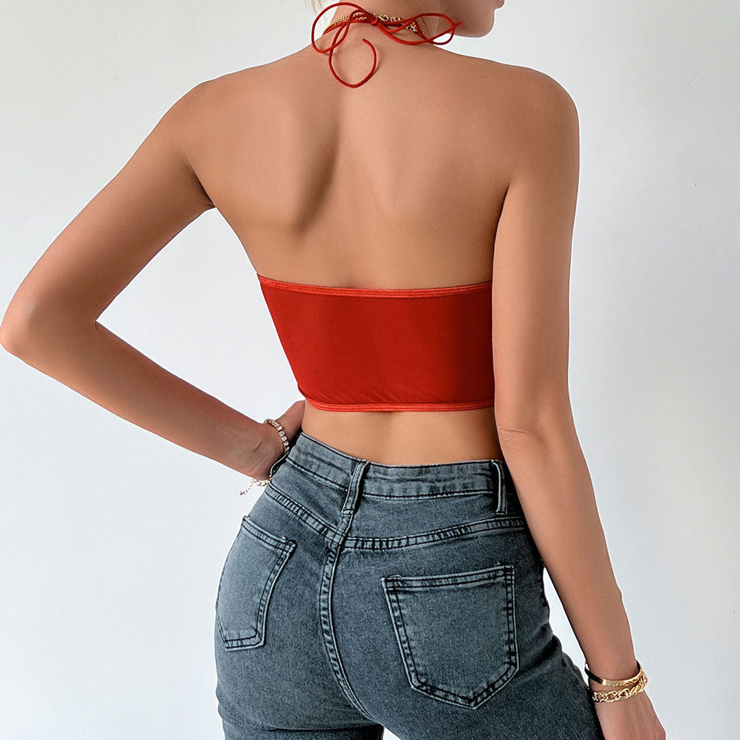 Polished Ruched Sweetheart Satin Crop Corset Top - Orange Red