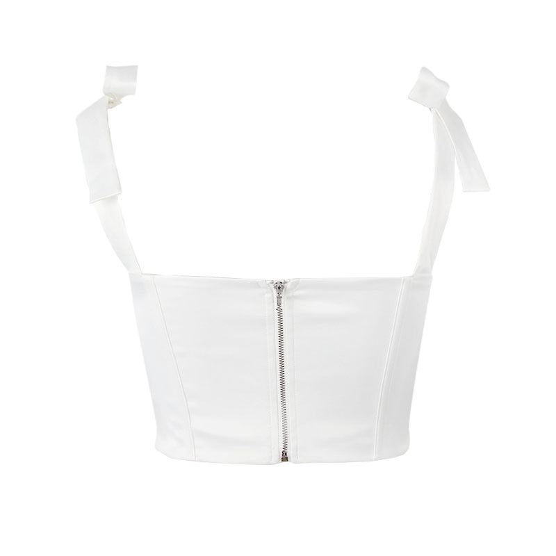 Satin Tie Strap Sweetheart Cropped Corset Tank Top - White