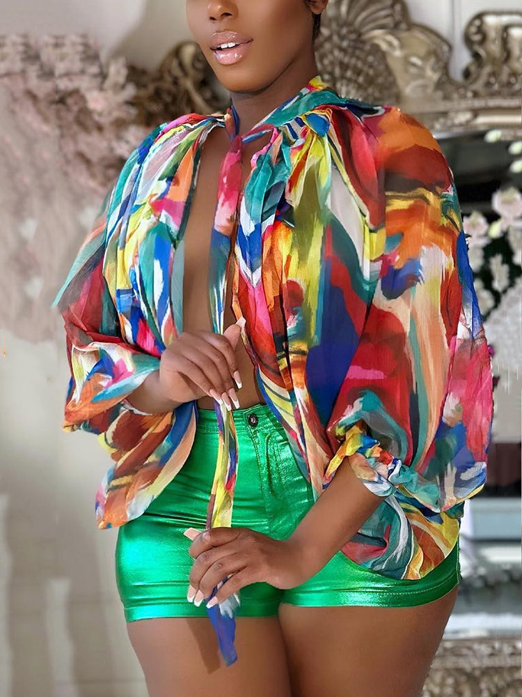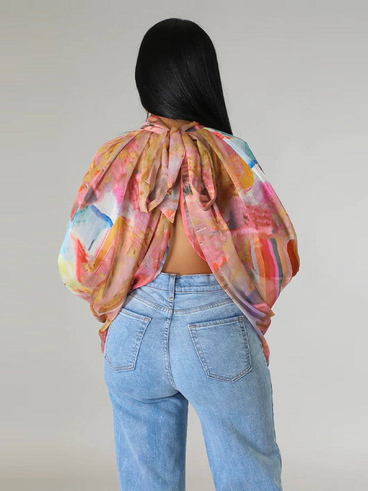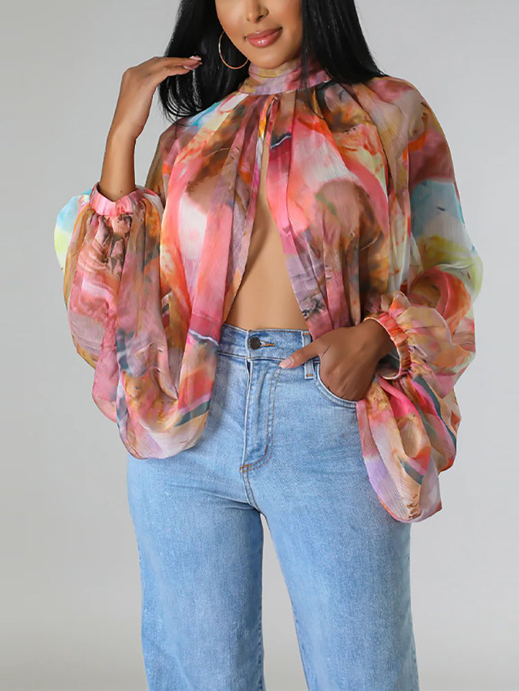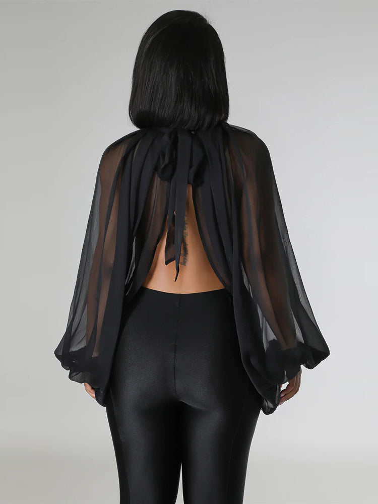 • Long sleeves with a round neckline and self-tie closure provide a flattering and adjustable fit