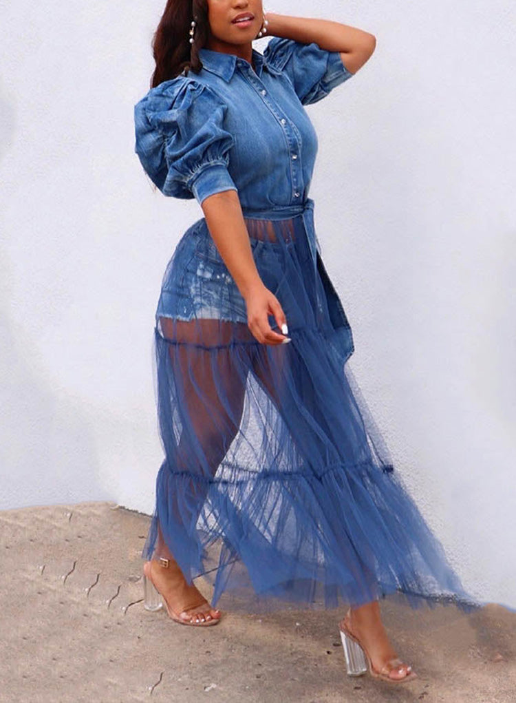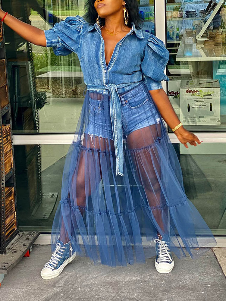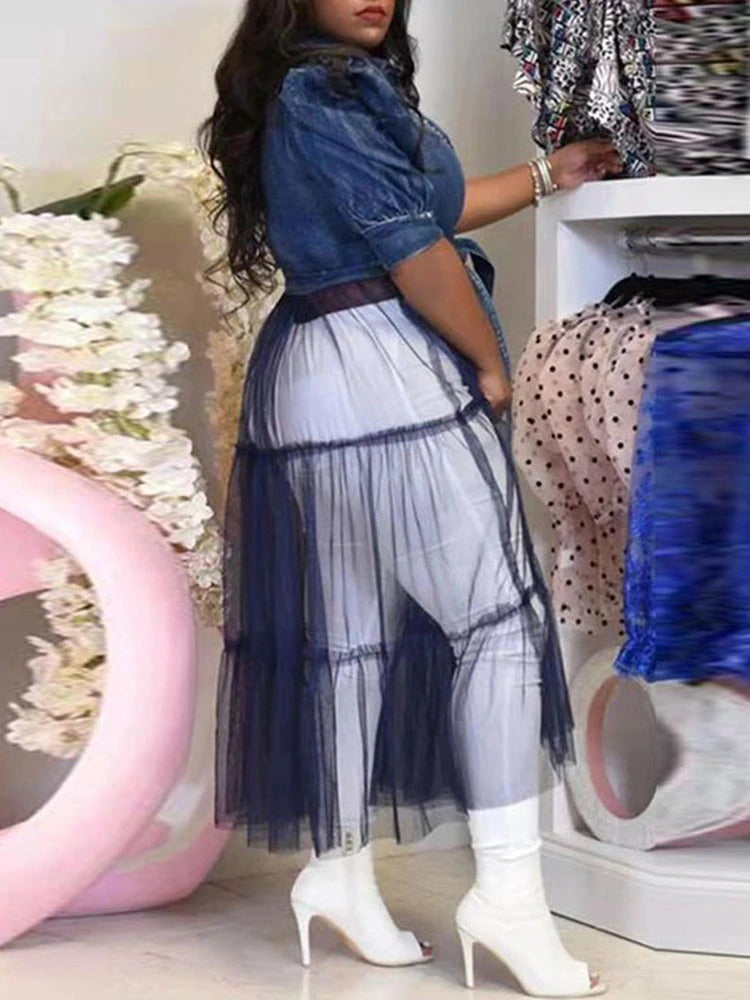 Denim Tulle Patchwork Top