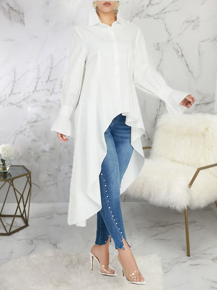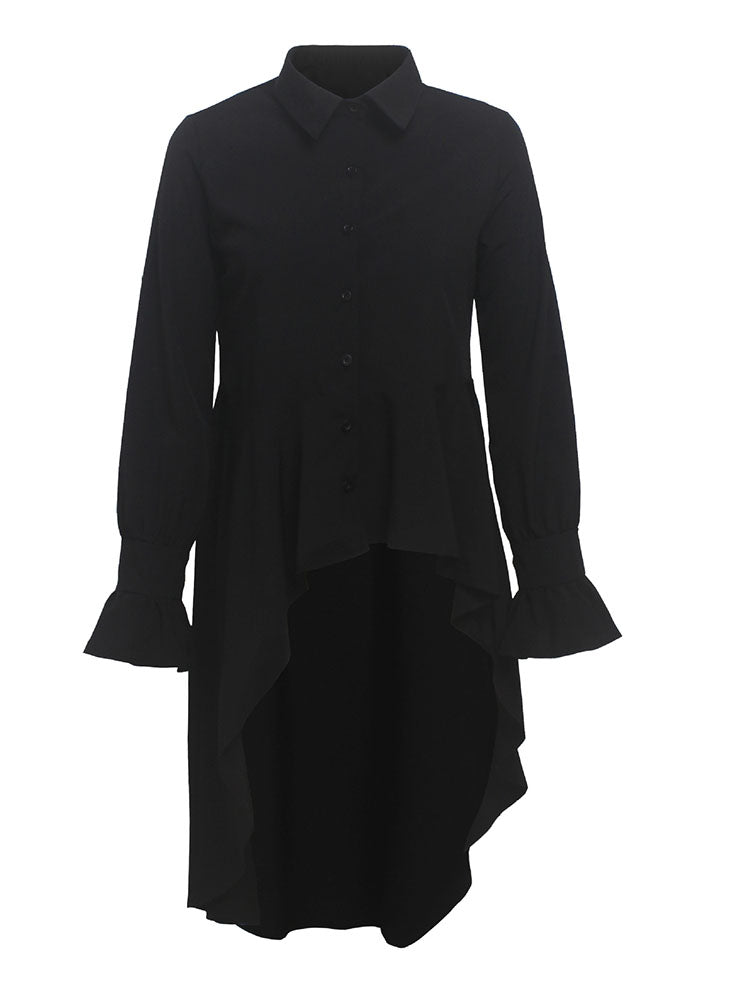 • Elegant ruffled high-low hem adds a fashionable edge and dynamic silhouette to your outfit