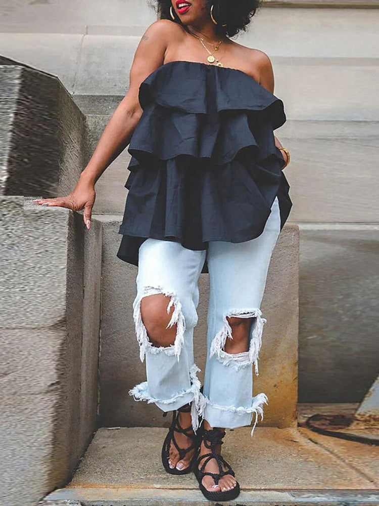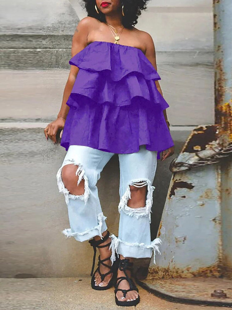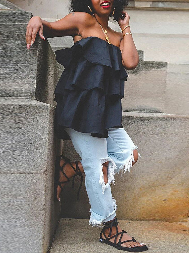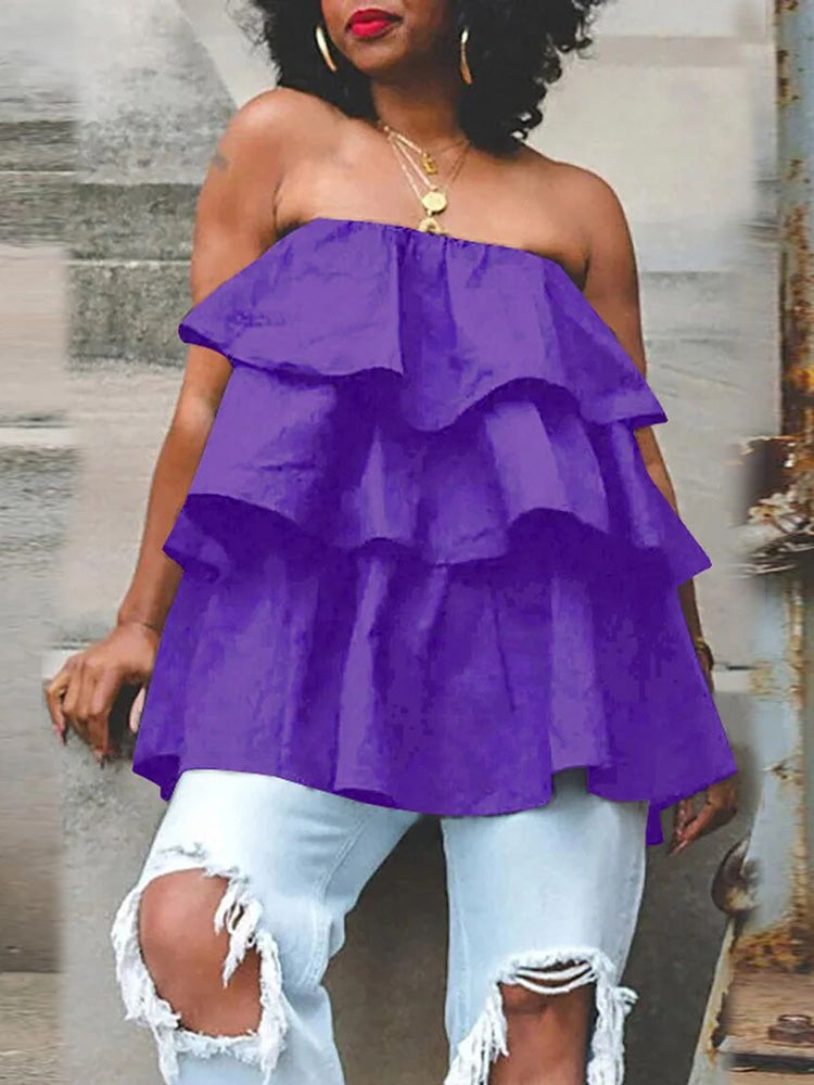 • Beautiful layered ruffles add a touch of feminine flair and voluminous style, making it ideal for casual outings or dressier occasions.