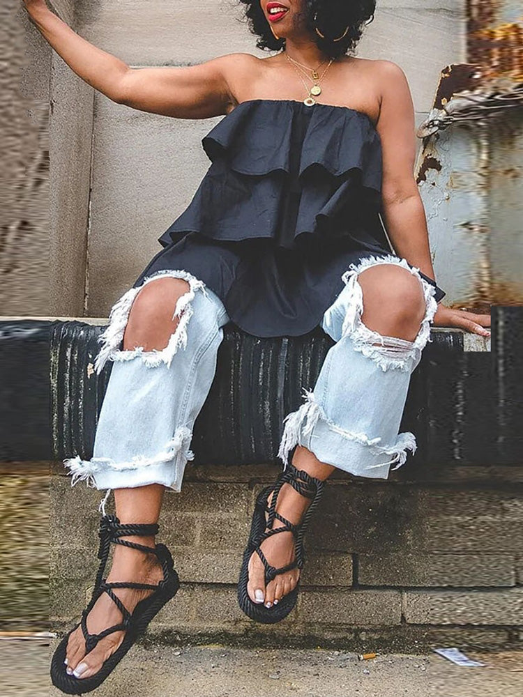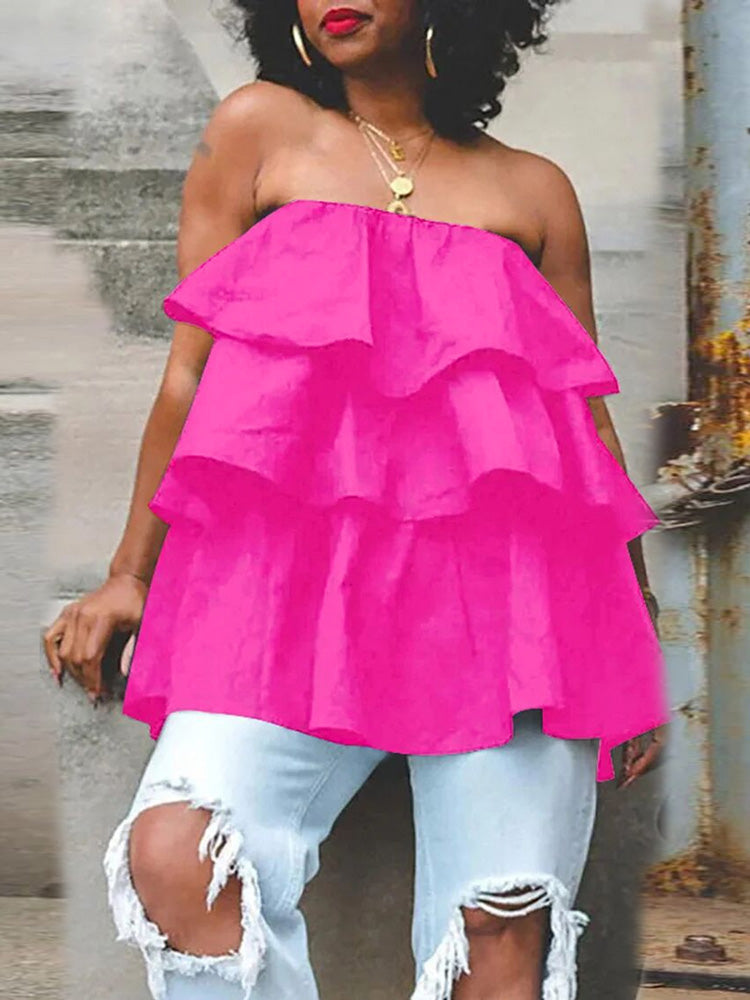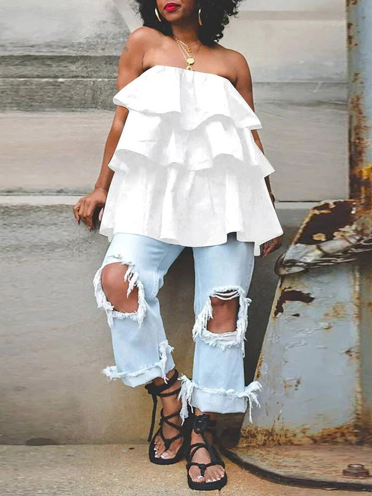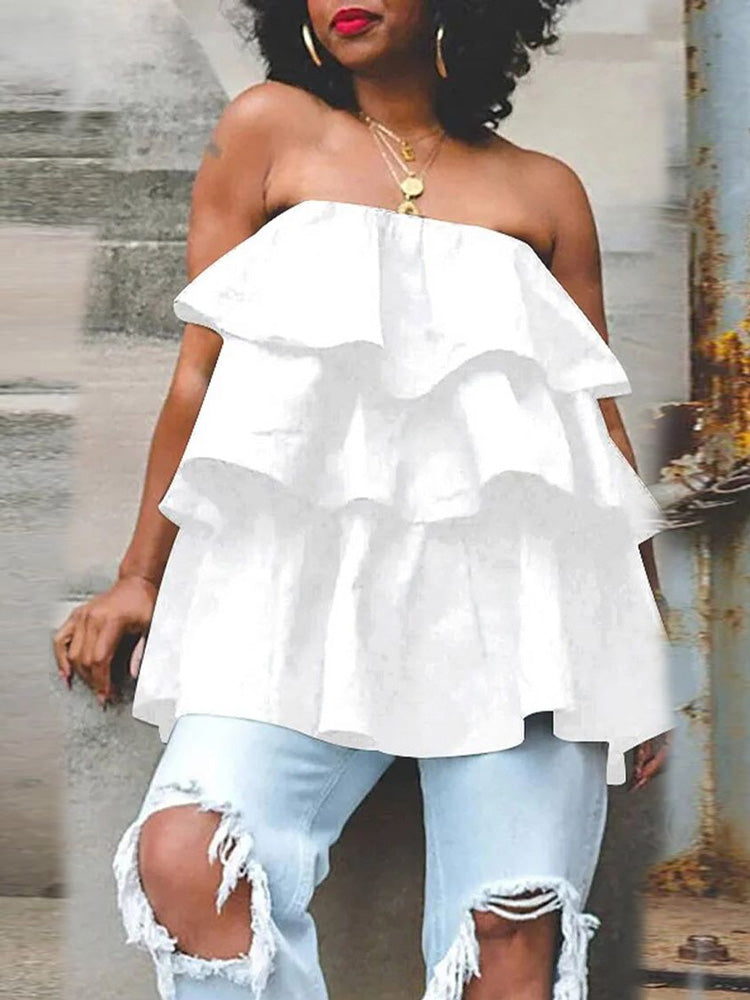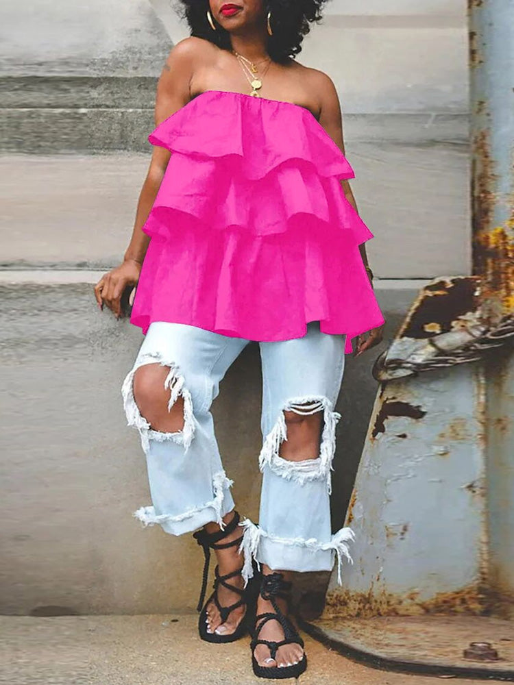 • Beautiful layered ruffles add a touch of feminine flair and voluminous style, making it ideal for casual outings or dressier occasions.