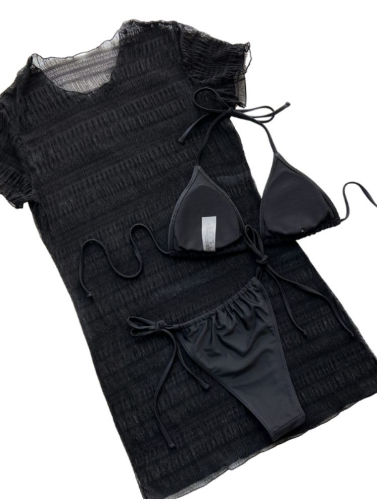 Our 3 Pieces Split Solid Black Color Swimsuit is designed to solve exactly this problem. It offers a versatile and flattering option that balances coverage and style perfectly.